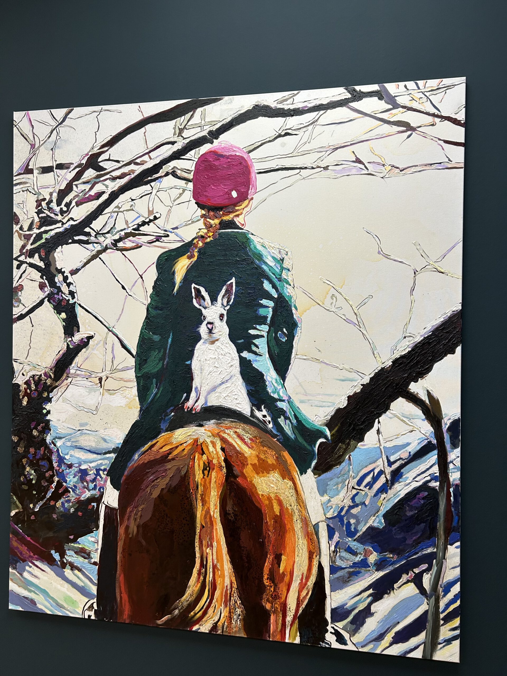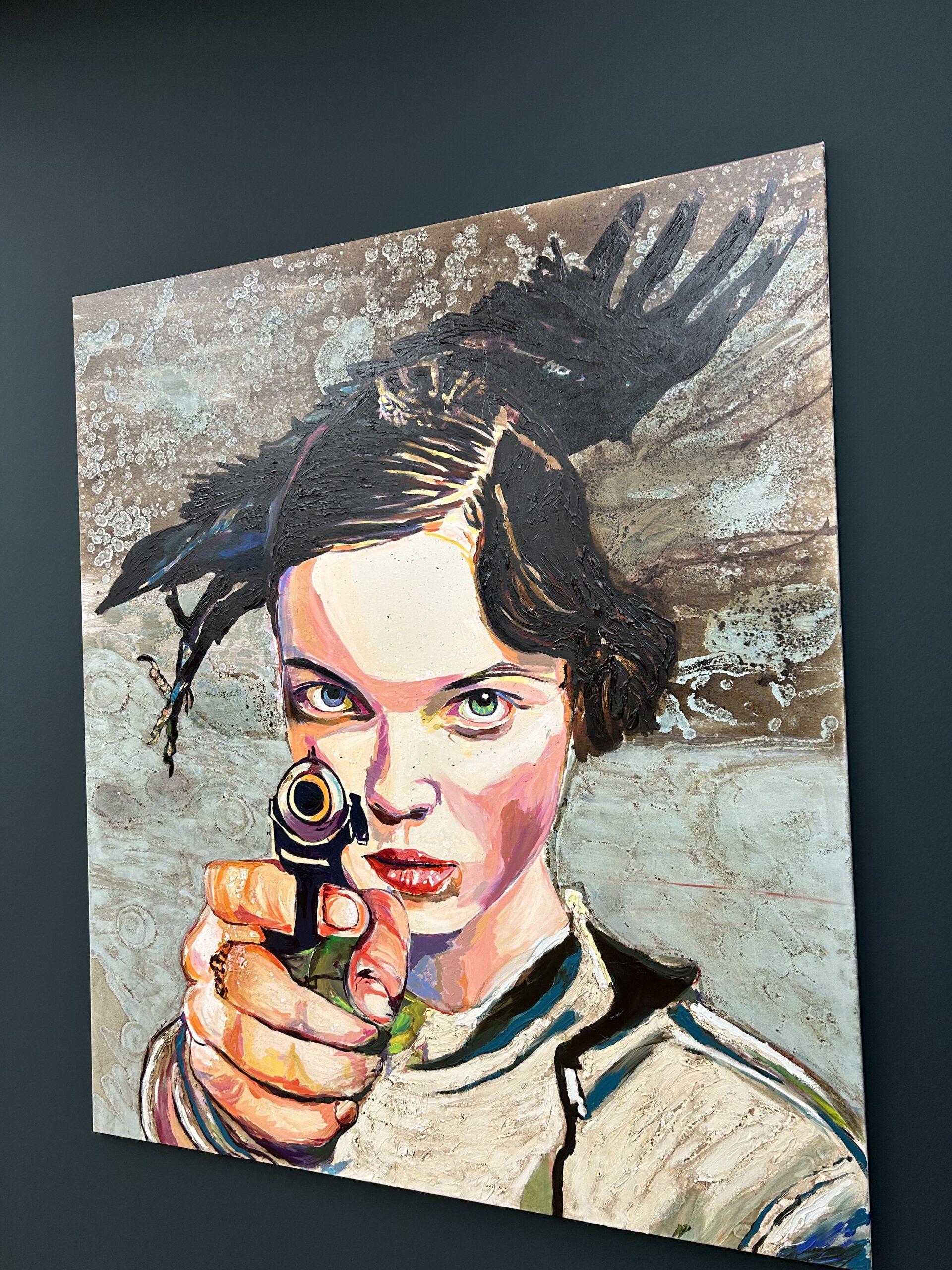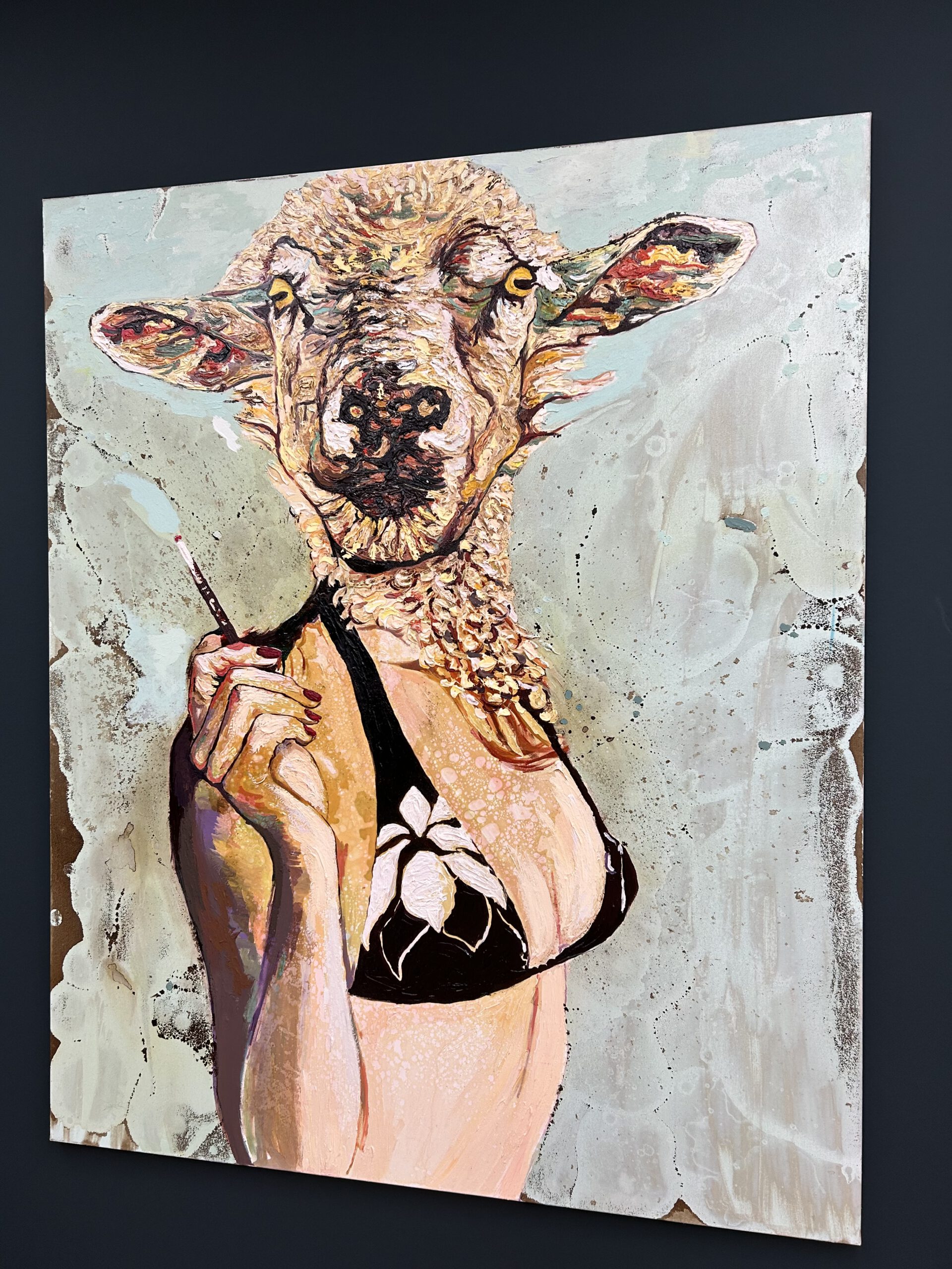 Farbe ist ihr Element. Ihr Fundament ein wilder Mix aus Romantizismus, Figürlichkeit und Vielschichtigkeit. Plus jede Menge Fantasie, Selbstironie und Witz. Malen ist für sie „ein Liebesakt“. Einer ihrer Vorbilder ist der Surrealist Louis Bunuel. Schleimes Bildkompositionen kombinieren häufig Frauen mit Tieren. Auf die Leinwand zaubert sie Fabelwesen, stark und selbstbewusst. Die Schleime-Menschen. Das Besondere: Die Blicke der Porträtierten ziehen die Betrachtenden magisch ins Bild hinein. Schau mir in die Augen!