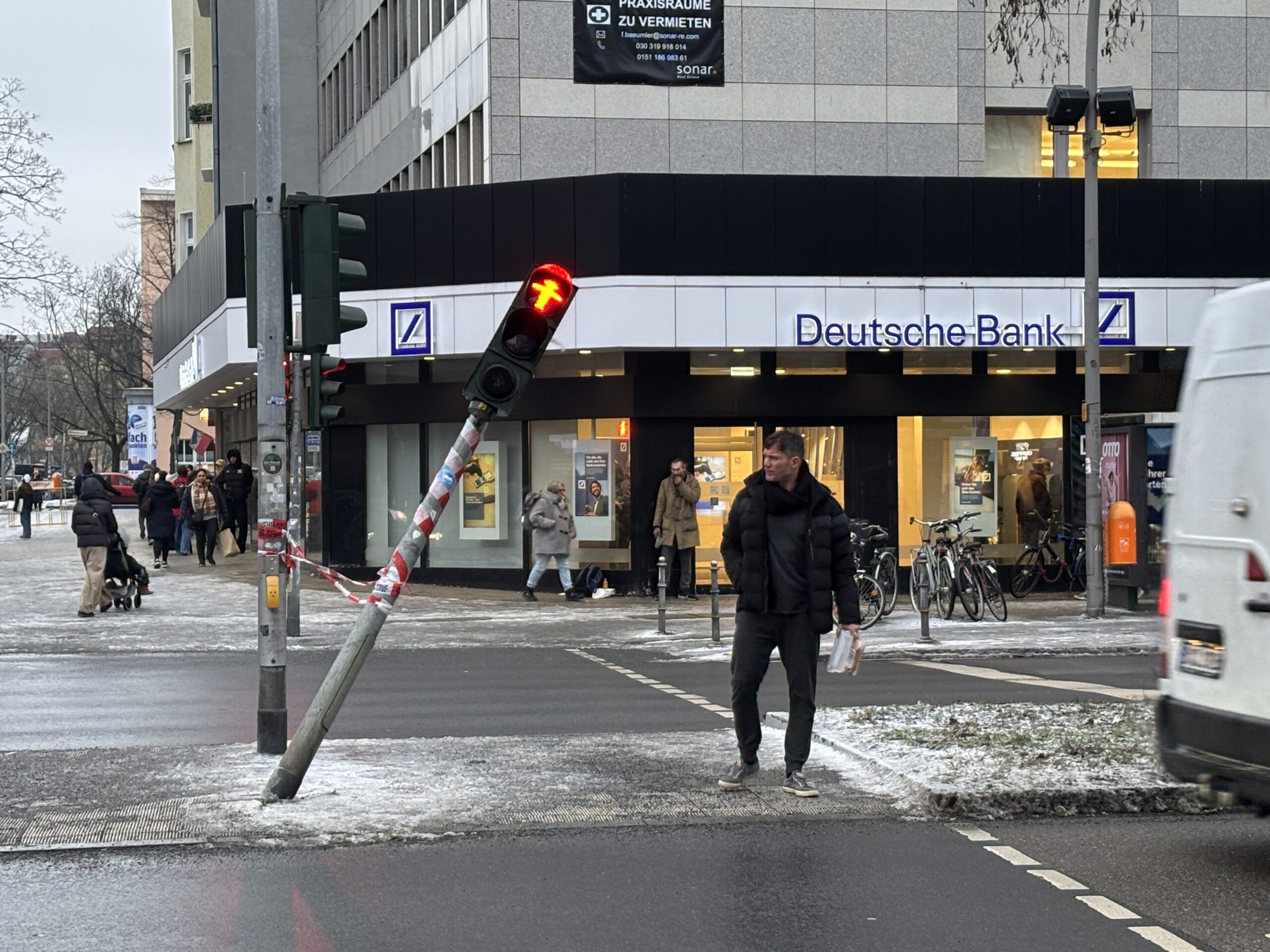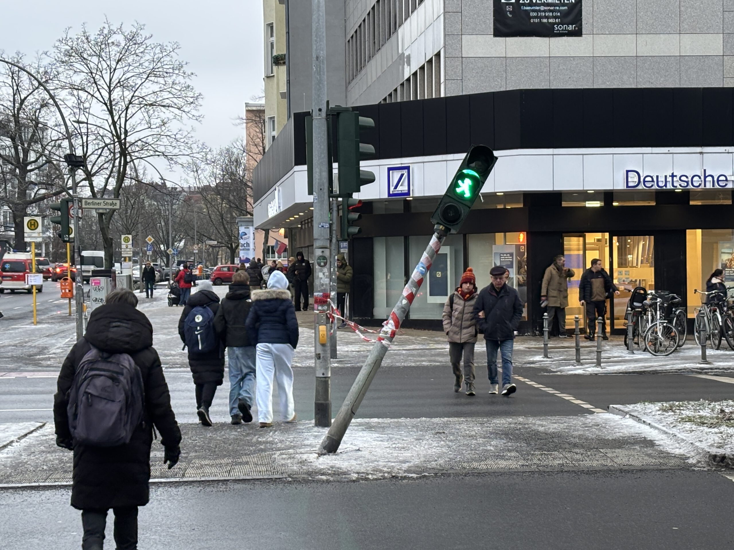 Berlin, mon amour. Das Ampelmännchen leuchtet trotz Eis und Karambolagen aller Art.