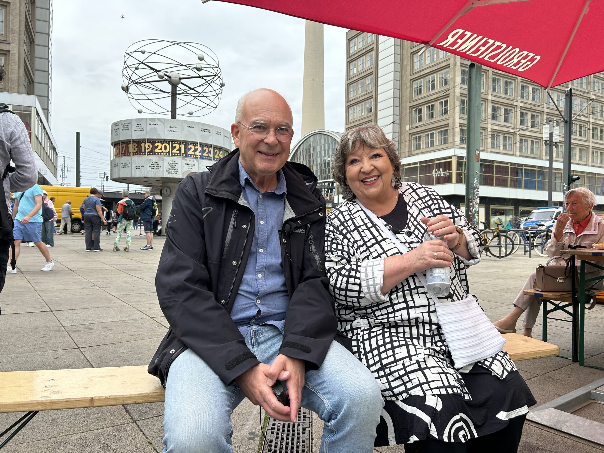 Vom ersten Moment an haben wir uns prächtig verstanden. Es hagelt Anekdoten, Witze und Geschichten unter der Weltzeituhr. Sie die Berliner Pflanze. Apothekenhelferin, Allrounderin: Sängerin, Schauspielerin, Schlagersternchen, Traumzauberfrau, Biermann-Protest-Resolution-Unterzeichnerin, Ausreisewillige, Ost-West-Wanderin, als es in der DDR nicht mehr ging.