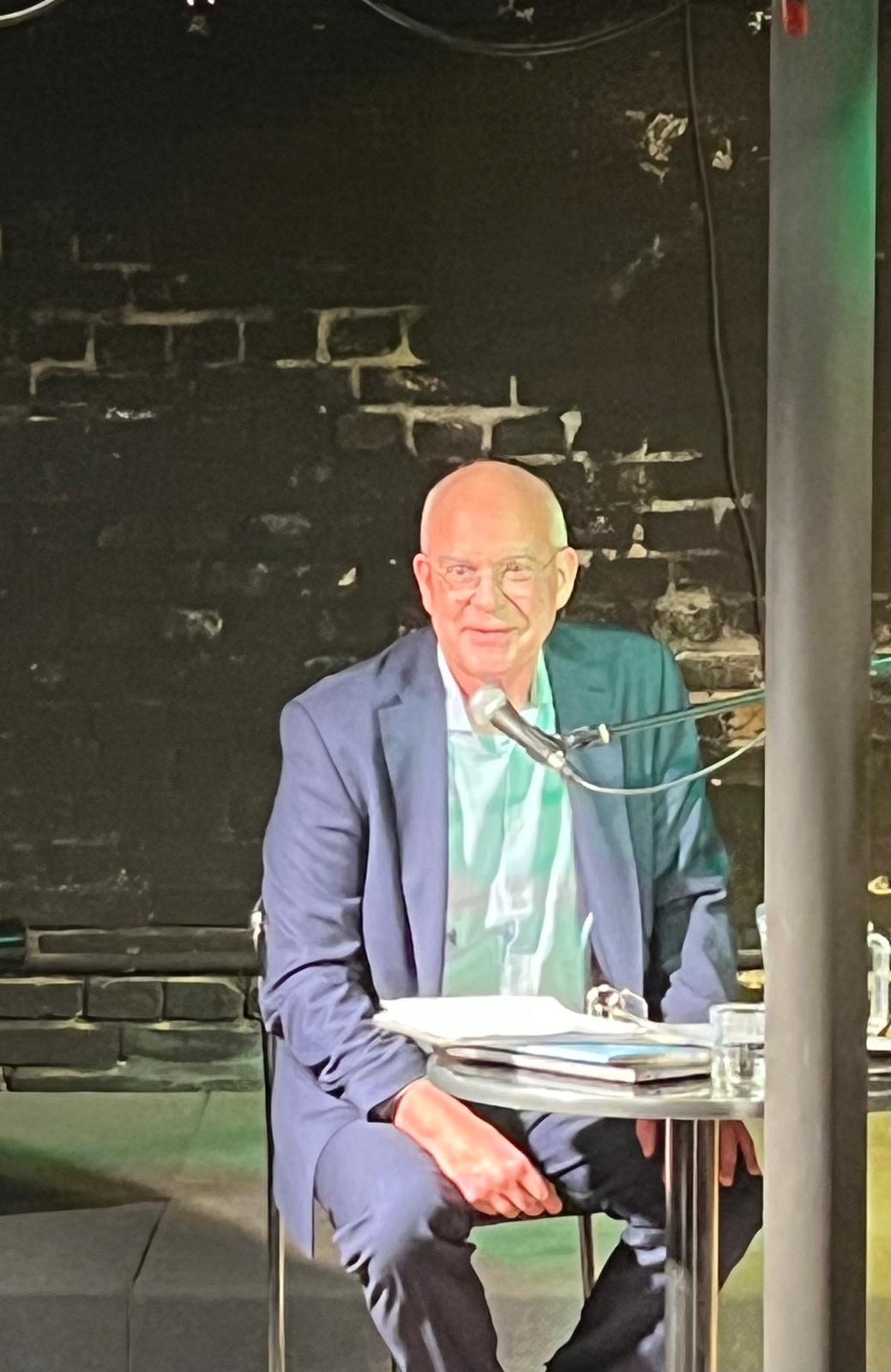 Mit Benjamin Stuckrad-Barre kurz vor der Premiere von „Noch wach?“ im Berliner Ensemble. April 2023. Foto: Bernd Huss
