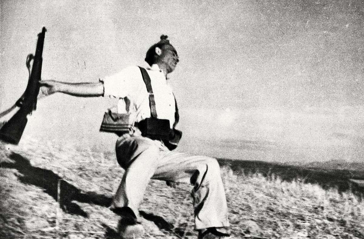 Es ist wieder Krieg. Heute mit punktgenauen Hochleistungs-Laserraketen und Drohnen. Vor 90 Jahren auf dem offenen Schlachtfeld. Robert Capas Aufnahme „Im Angesicht des Todes“. Der 22-jährige Fotograf dokumentierte einen von einem Kopfschuss getroffenen republikanischen Soldaten im Spanischen Bürgerkrieg. Eine Ikone der Kriegsfotografie, aufgenommen mit einer Leica. Robert Capa. Cordoba, 1936.